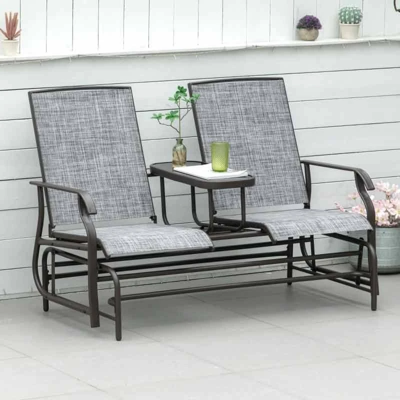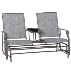 Outsunny 2-Seat Metal Texteline Garden Rocking Chair-Grey – 84A-011
