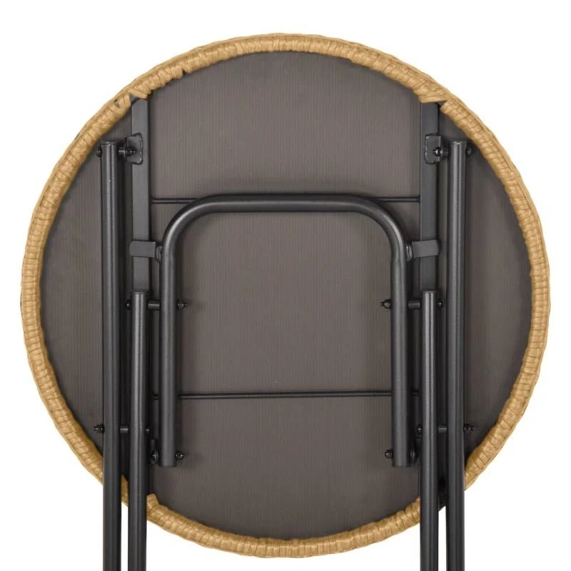 The 3-pieces by Outsunny produce a raw look that blends seamlessly with your patio, balcony, terrace, or garden. This bistro set is strong, lightweight, and weatherproof. The bistro set is made of PE rattan material, which is simple to maintain and clean. Retro style and the natural pattern of rattan can be used to beautify your home. When not in use, the foldable design makes storage easier. There is no assembly needed.