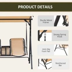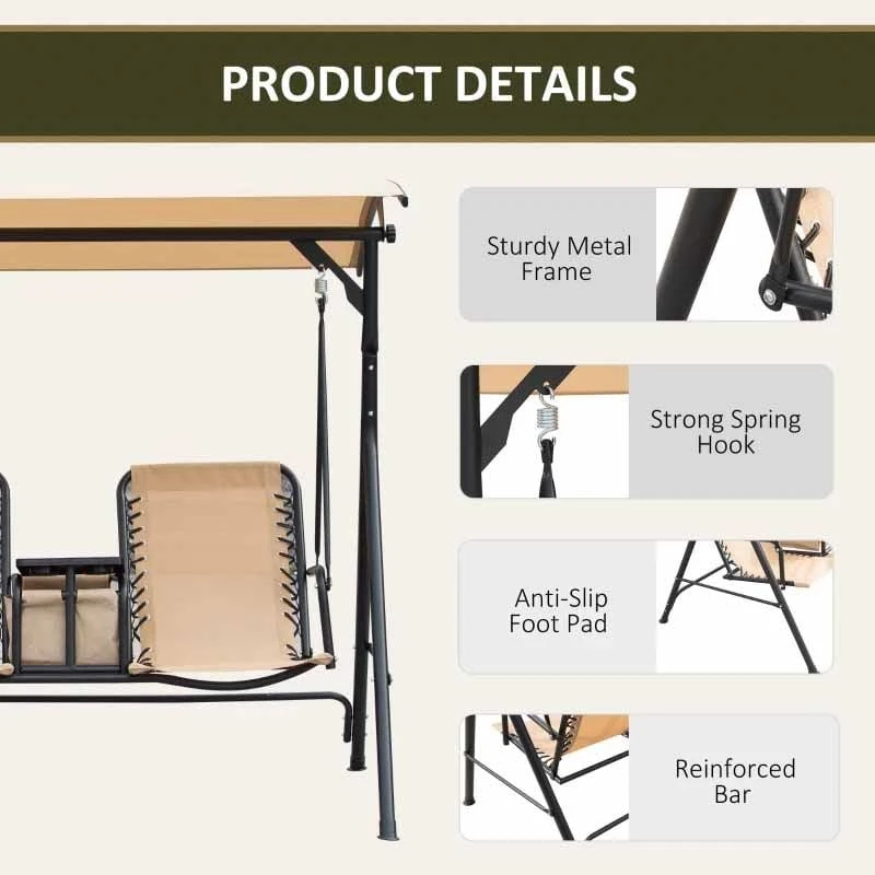 Outsunny 2-Seater Garden Swing Chair with Table – Beige – 84A-141BG