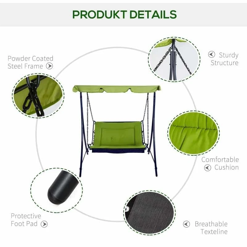 Outsunny 2 Seater Garden Swing Seat Bed – Green – 84A-072GN