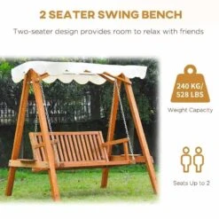 Outsunny 2-Seater Wooden Swing Chair – Cream – 01-0303