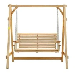 Outsunny 2-Seater Larch Wood Swing Chair – Natural – 01-0862