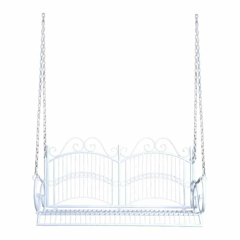 Infuse elegance into your garden effortlessly with this 2 seater garden swing from Outsunny. Pure white colour offers a fresh and clean look. Made into a spacious two-seater to ensure plenty of room to relax with a friend. A slightly curved swing seat, paired with the high back and armrests ensures comfort and support. The slatted seat prevents water buildup and damage to the metal. The four chains attaching the seat to the frame ensure security for a weight of up to 182kg.