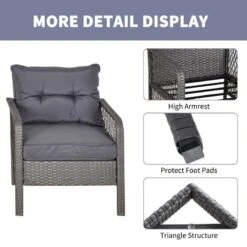 Outsunny 2 Seater Patio Rattan Wicker Coffee Table Bistro Set with Cushion – Grey – 863-072V70