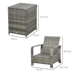 Amazing patio furniture collection by Outsunny, composed of a three-piece rattan bistro set. It has a matching table and two wide seats, making it the ideal place to unwind and meet up with a buddy in the outdoor spaces. Each piece has a steel base structure that is covered in PE rattan to ensure strength and protection from weather conditions while making it simple to clean. a discrete storage space for organisation on the table. The seats and backs have thick, padded cushions for hours of comfort, and the seat coverings can be taken off and cleaned for cleanliness.