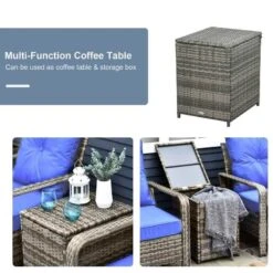 Outsunny 2-Seater PE Rattan Garden Seating Set with Padded Chair – Blue- 860-111V71BU