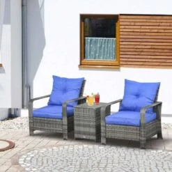 Amazing patio furniture collection by Outsunny, composed of a three-piece rattan bistro set. It has a matching table and two wide seats, making it the ideal place to unwind and meet up with a buddy in the outdoor spaces. Each piece has a steel base structure that is covered in PE rattan to ensure strength and protection from weather conditions while making it simple to clean. a discrete storage space for organisation on the table. The seats and backs have thick, padded cushions for hours of comfort, and the seat coverings can be taken off and cleaned for cleanliness.