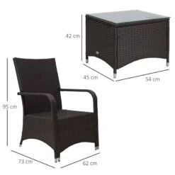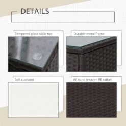 The outsunny outdoor bistro set is a great option for your garden, patio, or balcony. The set is combined with steel frame and wrapped with rattan. The two seats come with cushions and tabletop with glass top to place drinks and magazines. The cushions are made of high-quality polyester fabric, which can be easily removed and washed. Lightweight and easily transportable. Polyester fabric is fire resistant to British standard. Assembly necessary.