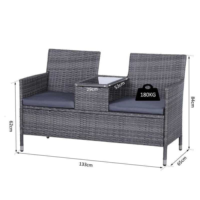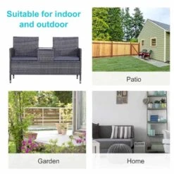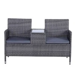 Outsunny 2-Seater Rattan Garden Bench w/Centre Table Grey-841-149GY