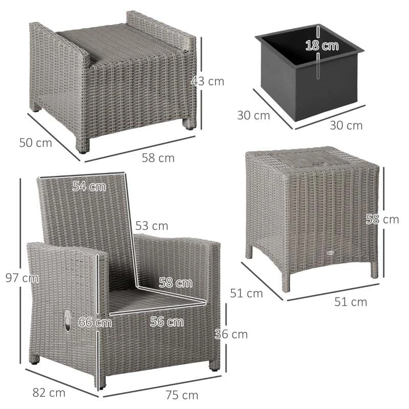 Outsunny 2-Seater Rattan Garden Furniture Set – Grey – 860-168