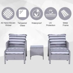 Outsunny 2-Seater Rattan Garden Furniture Set – White/Grey – 860-066V01GY