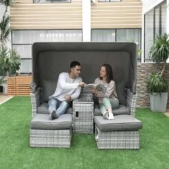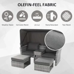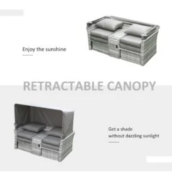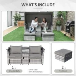 Outsunny 2-Seater Rattan Garden Furniture Set With Canopy – Grey – 860-171