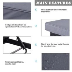 - Longline padded cushion on top of each lounger, with tie fastenings to keep in place