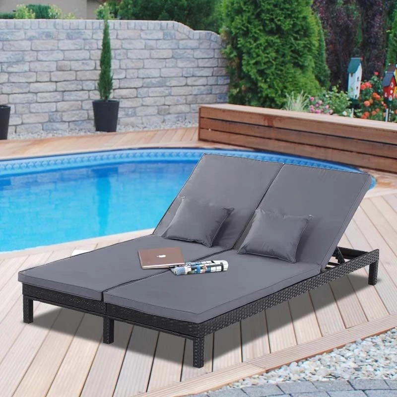 Outsunny 2 Seater Rattan Reclining Sun Lounger Set – Grey – 862-023V71BK