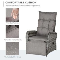 Outsunny 2-Seater Rattan Garden Furniture Set – Reclining – Grey – 862-032V70
