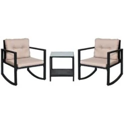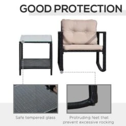 Outsunny 2 Seater Rattan Rocking Bistro Set with Cushion -Black / Beige – 867-036