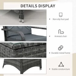 Outsunny 2-Seater Rattan Table Chair Bistro Garden Furniture Set – Grey 841-143V01GY