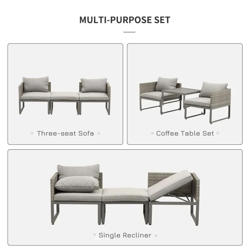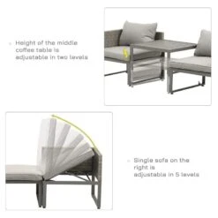 Outsunny 2 Seater Rattan Wicker Adjustable Sofa Coffee Table Set – Grey – 863-057