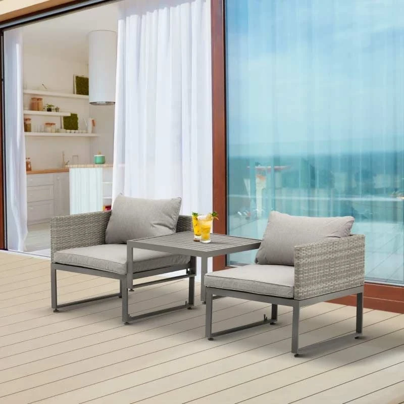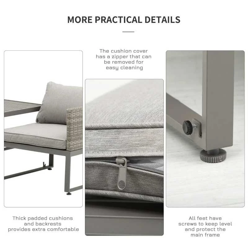 A Outsunny sofa is bound to make your days better than ever before. The frame is made up powder coated Steel makes up strong and durable. Each chair has a PE wicker panel on the corner back in mixed grey to help blend to match your outdoor furniture and support you when you lean back. The seat can be adjusted to five different positions and has plush cushions on the back and seats for comfort. Even on an uneven floor, you can stay balanced thanks to the adjustable feet.