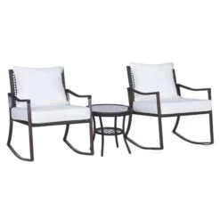 Outsunny 2 Seater Rocking Chair Bistro Set – Brown/Cream White – 863-031
