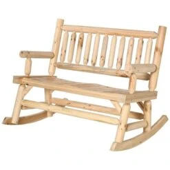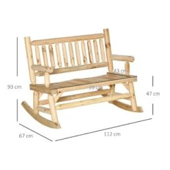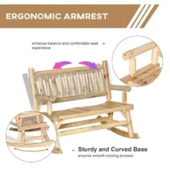 Outsunny 2-Seater Rocking Garden Bench-Natural Wood-84A-133ND