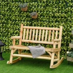 Outsunny 2-Seater Rocking Garden Bench-Natural Wood-84A-133ND