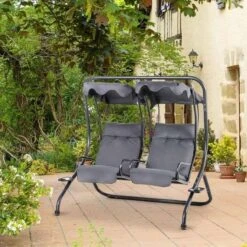 Outsunny 2 Seater Seperate Canopy Garden Swing Chairs – Grey – 84A-052V71
