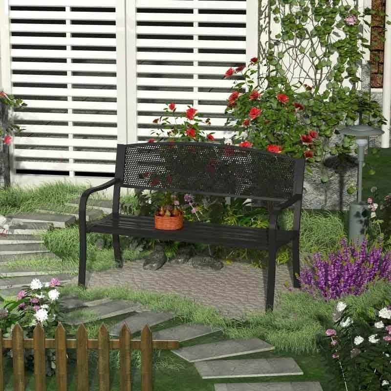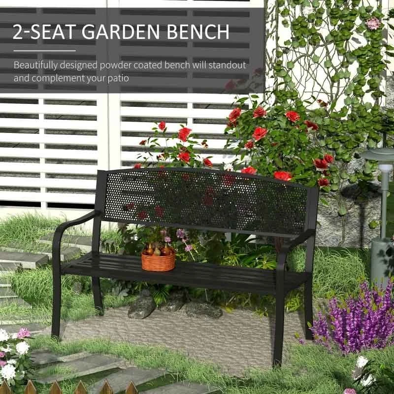 Outsunny 2 Seater Steel Garden Bench – Black – 84B-182BK