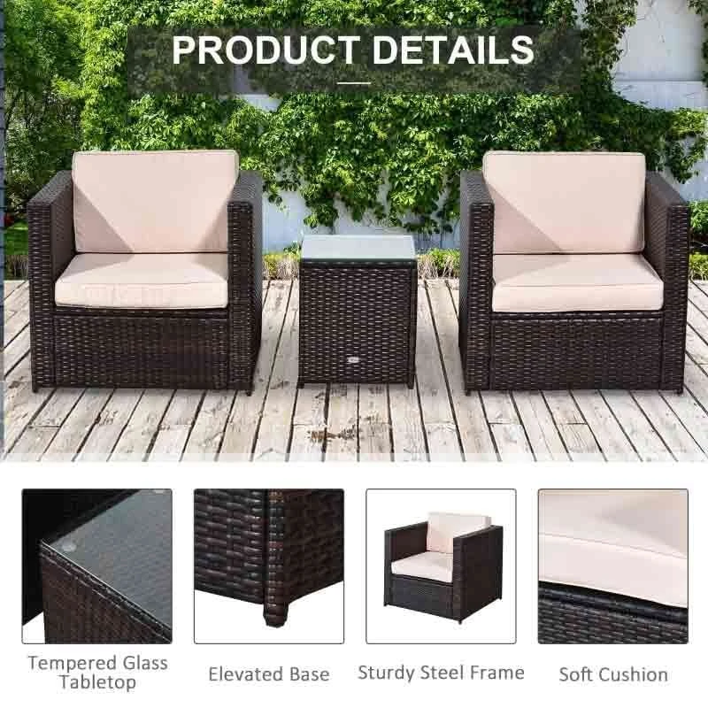 Outsunny garden furniture is made from premium, hand-woven PE wicker rattan with a metal frame underneath. This three-piece chair and table set is incredibly robust and dependable. The padded cushions, high-rise back, and wide seats of this set have been designed with comfort in mind. The set is weather-resistant and appropriate for year-round usage. They are ideal for curling up and relaxing away the day in the sun. Simple to maintain and care.