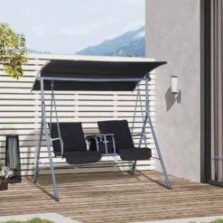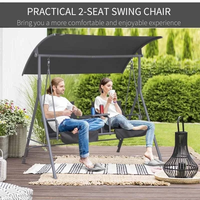 Outsunny 2-Seater Swing Chair with Table – Grey – 84A-057V70