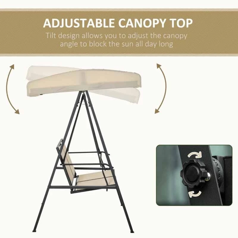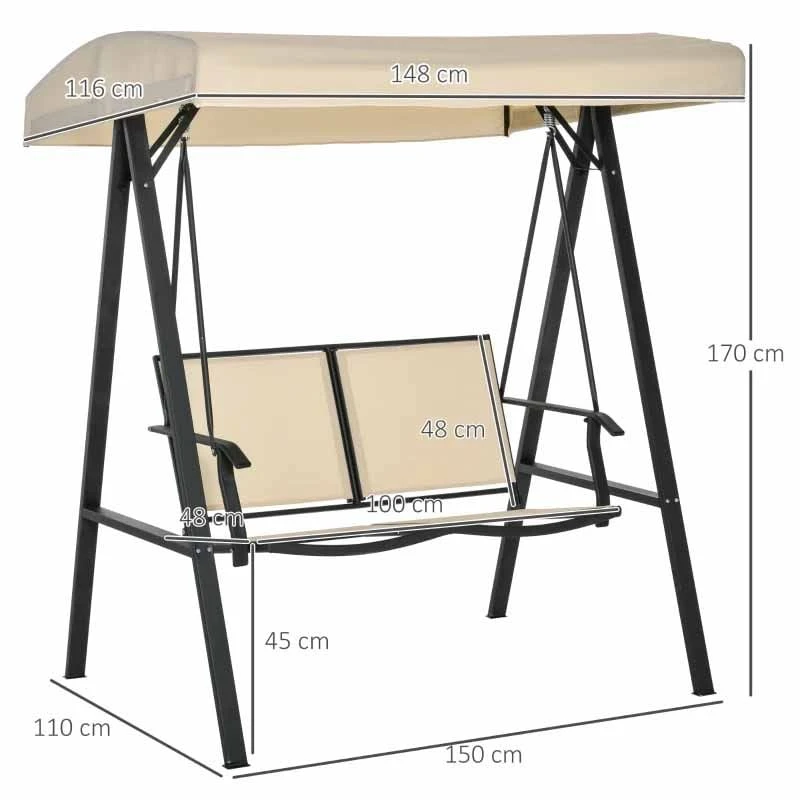 Outsunny 2 Seater Textilene Garden Swing Chair with Canopy – Beige – 84A-236BG