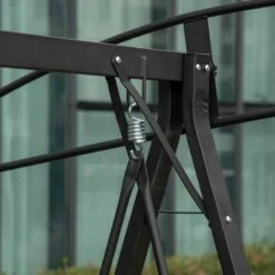 Enjoy outdoors with this two-person Outsunny swing chair. Smooth and slightly breathable textilene fabric adds a comfortable seating experience. The adjustable canopy protects from mild weather conditions, keeping you cool and dry while relaxing. The solid ‘A’ steel frame makes the swing tough and stable. This swing allows you to gently sway the day away.