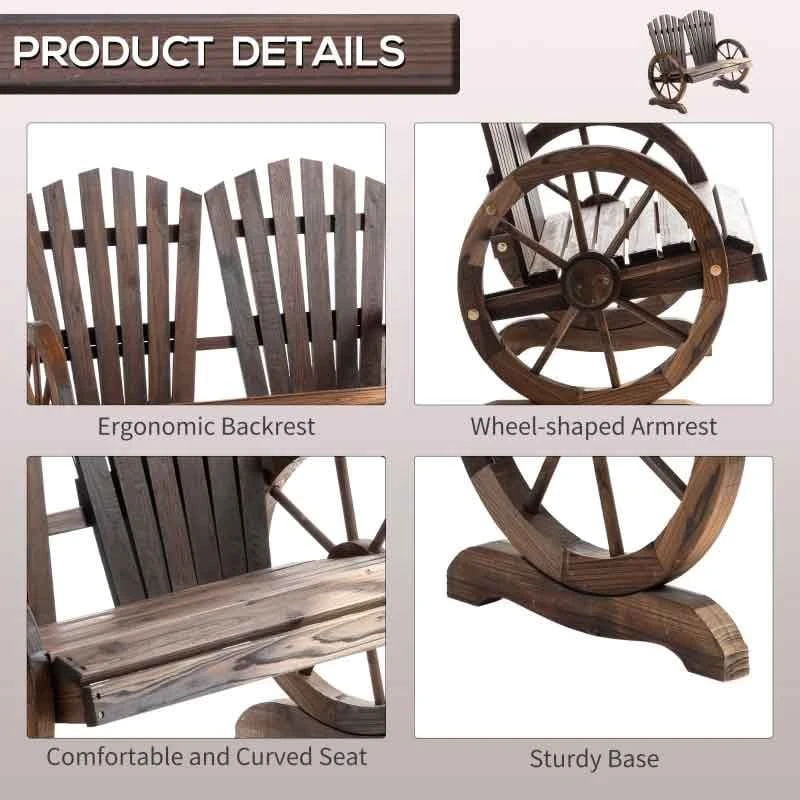 Constructed from natural fir logs and wagon wheel arm rests design, this Outsunny garden bench is a must have piece of furniture to compliment your outdoor living space. With high back, deep seats and curved arm rests this garden bench will keep you and a friend supported and comfortable for hours on end. The slatted back and seat design prevents water build up and circulates air keeping you cool on warm summer days. Constructed from solid fir wood logs, this garden bench is durable, weather resistant and will last for years to come in the elements. This garden bench is truly a magnificent piece of furniture and is a must have so you can enjoy your surroundings in peace and tranquillity.