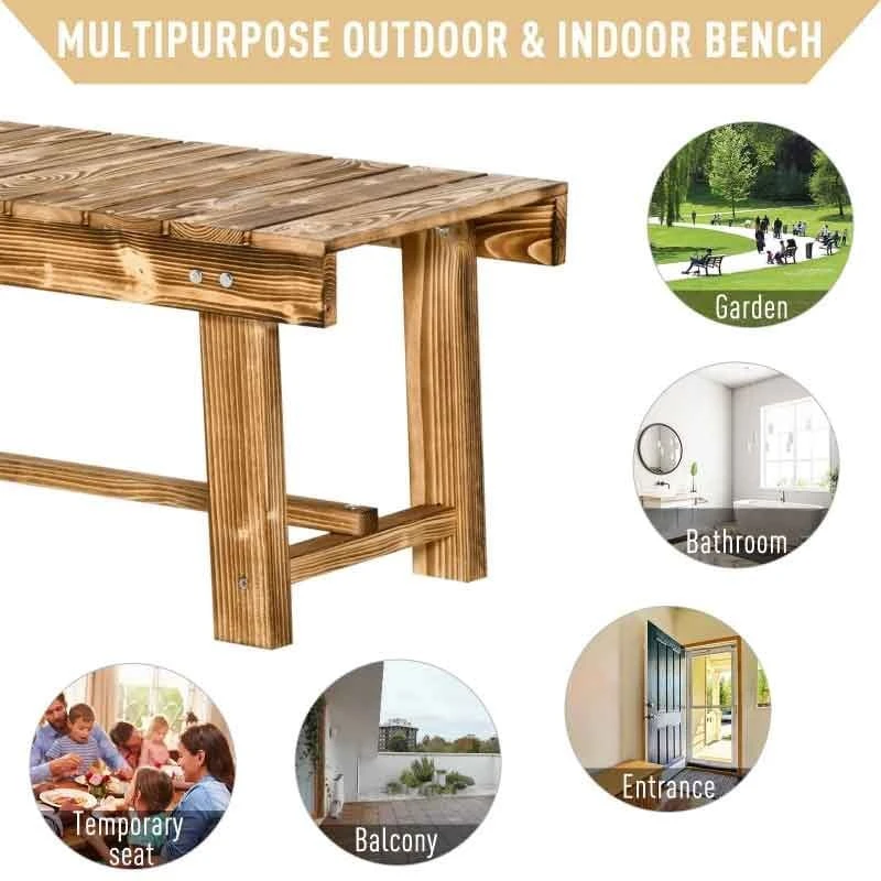 Outsunny 2-Seater Wooden Garden Bench – Carbonised – 84B-362CF