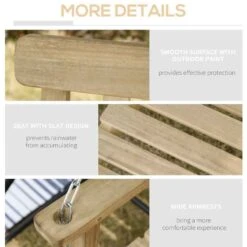 This two person Outsunny Fir wood swing chair is a great way to style your outdoor areas. Galvanized steel chains on each side allow you to hang the swing chair up from a higher platform whilst seated safely and securely. Constructed out of natural wood and treated with a water-resistant varnish making it withstand most weather conditions. Its slatted design on the seat and back prevent water build-up while seating and provides proper air circulation. Wide armrest and backrest provide ultimate comfort.
