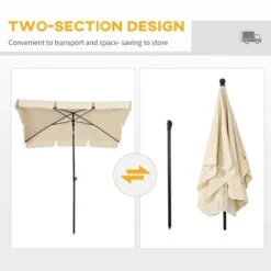 Outsunny 2 x 1.25m Rectangular Tilt Aluminium Parasol Patio – Beige – 84D-016BG