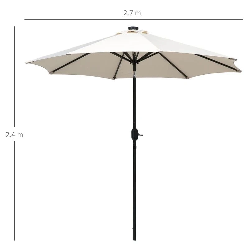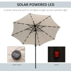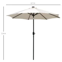 Outsunny 24 LED Solar Powered Parasol Umbrella – Cream White – 84D-018CW