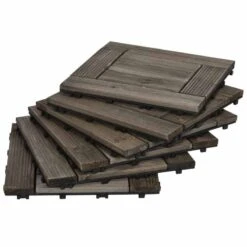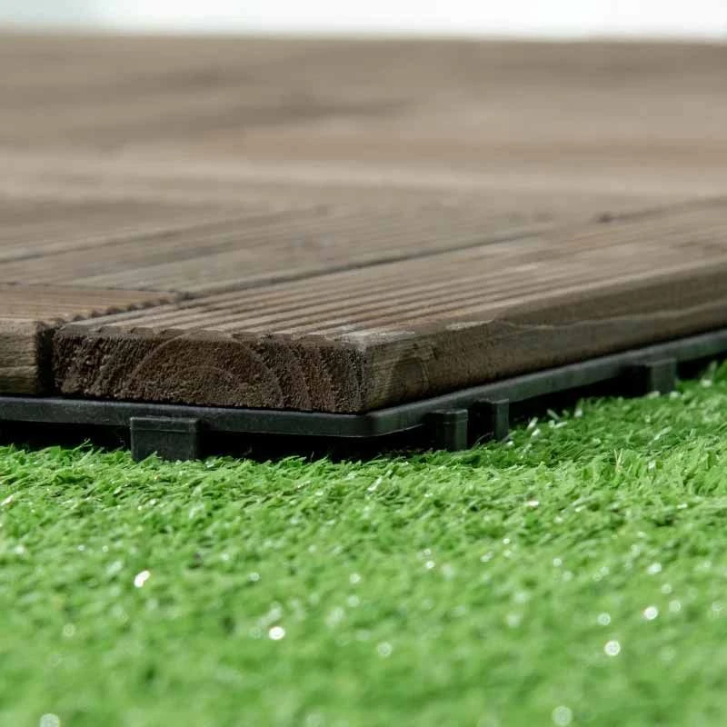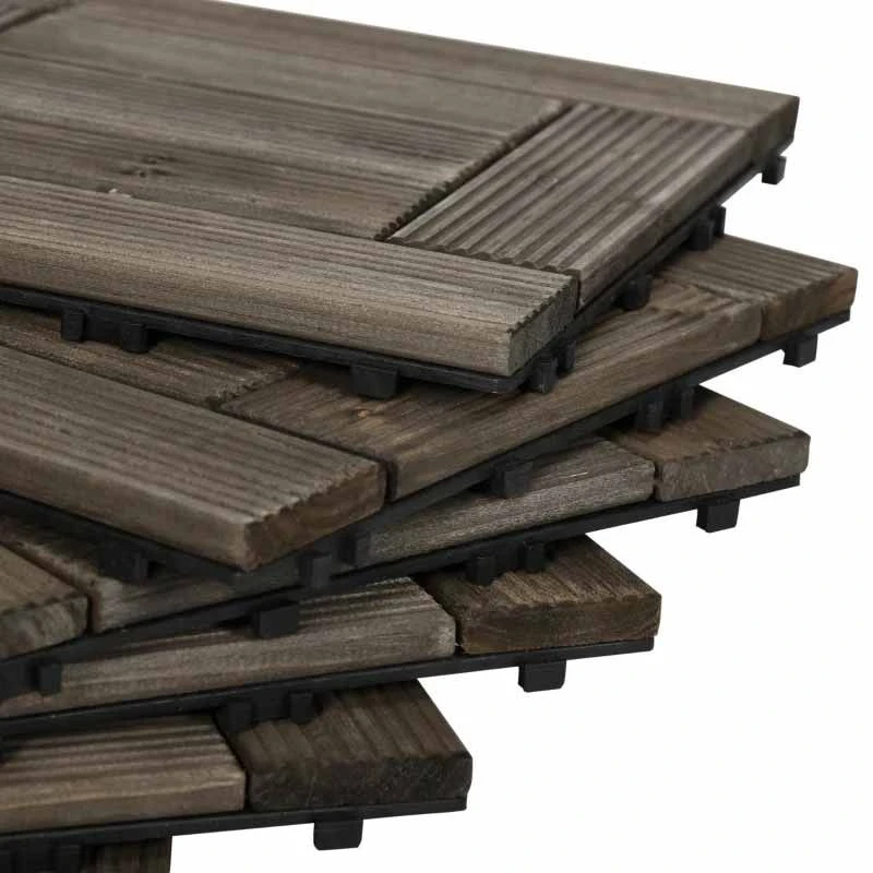 Outsunny 27 Pcs Wooden Interlocking Decking Tiles – 30 x 30cm Per Piece – Charcoal Grey – 844-608V00CG