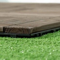 - Solid wood tiles are tough, durable, and feature anti-slip PVC bottoms