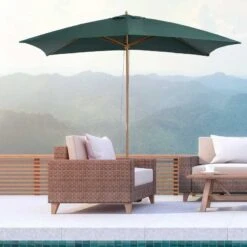 Outsunny 295L x 200W x 255Hcm Wooden Umbrella Parasol – Dark Green – 01-0216