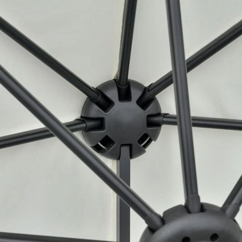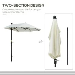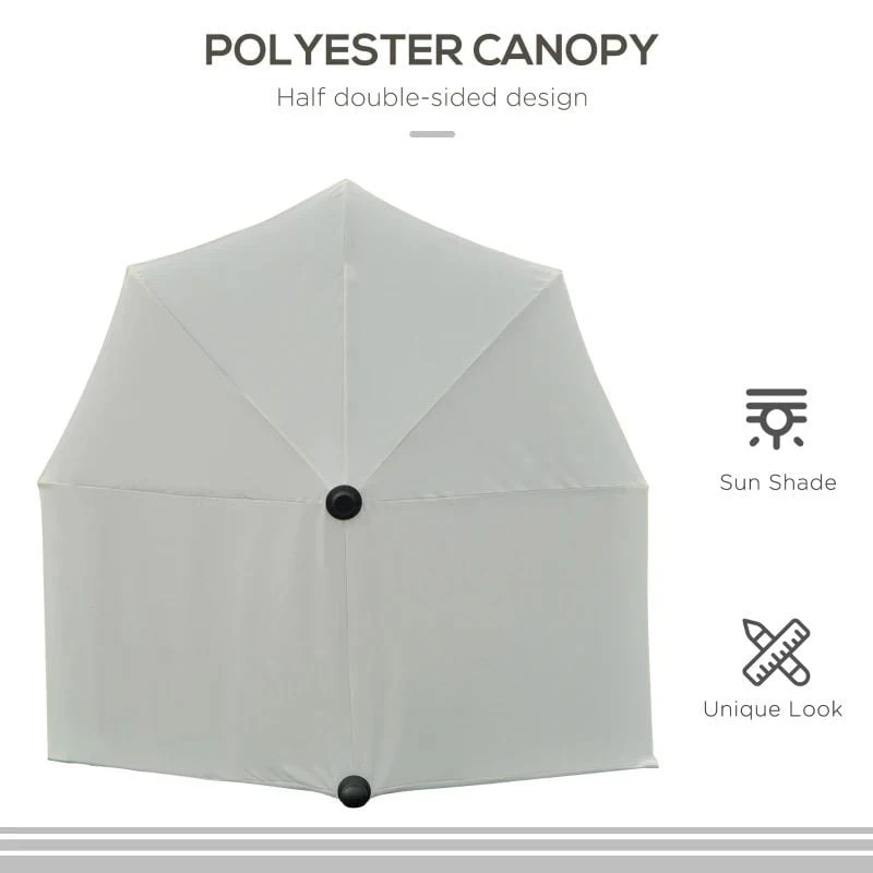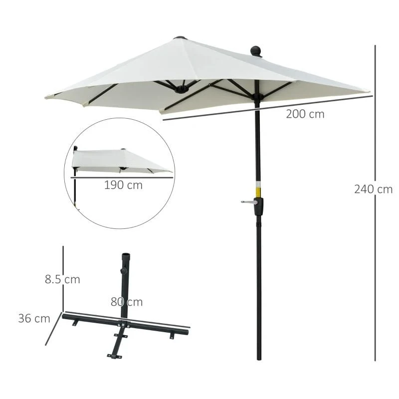 The Outsunny half parasol features an exclusive half-cut size that allows it to stand against your wall and provide safe and dependable shade. This parasol produces an enjoyable shaded space when placed against a wall, window, or fence. The extra-long canopy provides larger shade coverage than normal umbrellas, keeping you safe while you enjoy the sun. Opening and closing the canopy is easy with the handy crank handle. The heavy-duty steel frame and rib connectors offer strength and longevity. It comes with a cross base for added stability, but weights are not included. For increased stability, recommend ordering Outsunny weighted plates (ASIN B00BJBV55I, SKU 01-0221). Assembly is necessary.