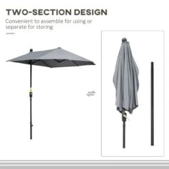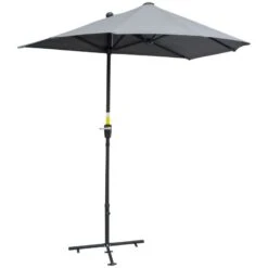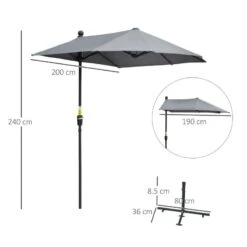 Outsunny 2m Half Balcony Parasol with Crank Handle & Base – Dark Grey – 84D-175CG
