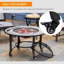 This multifunctional Outsunny firepit is a stylish addition to your outdoor living. Features a bottom pit for holding fire with a cooking grate to hold food. The food-grade cooking grate is easy to remove to change into a fire pit table, easy to add charcoal in, and place back on for barbecuing food. The wheels help to move around easily. The metal frame is strong providing strength & stability. Height is adjustable to 470mm, 570mm, and 670mm. A great compliment to your outdoor living and a perfect piece to have during the cool evenings.