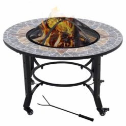 Outsunny 3-in-1 Outdoor Fire Pit on Wheels – Black – 842-218