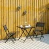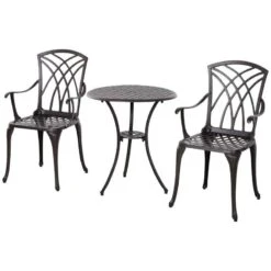 Outsunny’s compact 3-piece bistro set features a middle hole to keep a sun parasol securely in place, with the backs of the chairs displaying a cut-out design for an attractive finish whether seated or not. The adjustable fleet helps with anti-slip to keep each piece level and in place, protecting your floor from damage. Easy to assemble.