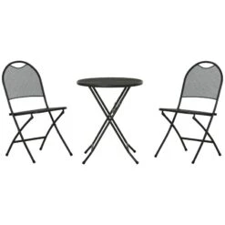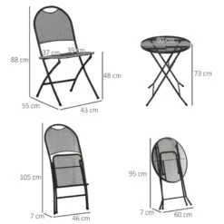 Outsunny 3 Piece Mesh Metal Bistro Set with Foldable Design – Black – 84B-707