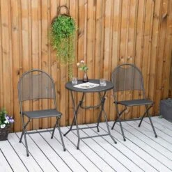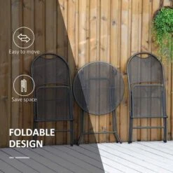 Outsunny bistro set garden furniture is perfect where space is tight in outdoor areas. The garden table and chairs can be folded flat for storage, and the chairs’ top handles make them smple to move. It only takes a few seconds to arrange this balcony furniture for guests. Easy to clean.