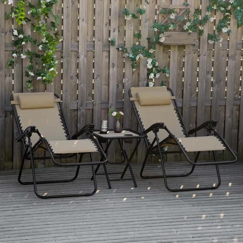 Outsunny 3-Piece Reclining Sun Lounger Set With Table – Beige – 84B-271V70BG