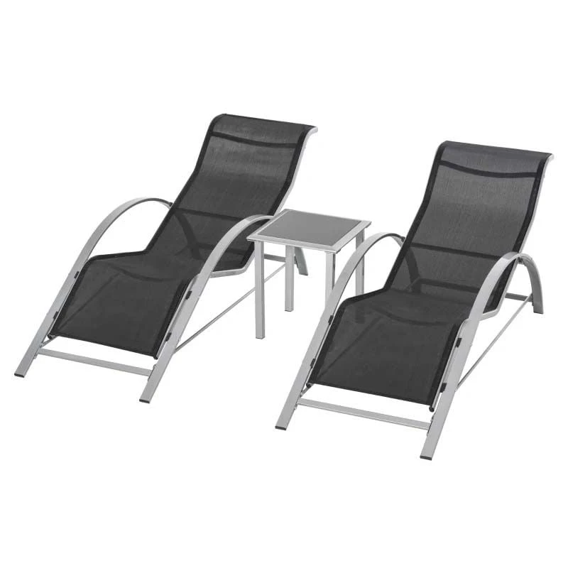Outsunny 3 Piece Sun Lounger Set With Table – Black – 84B-570SR