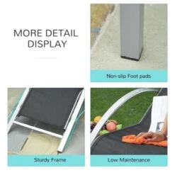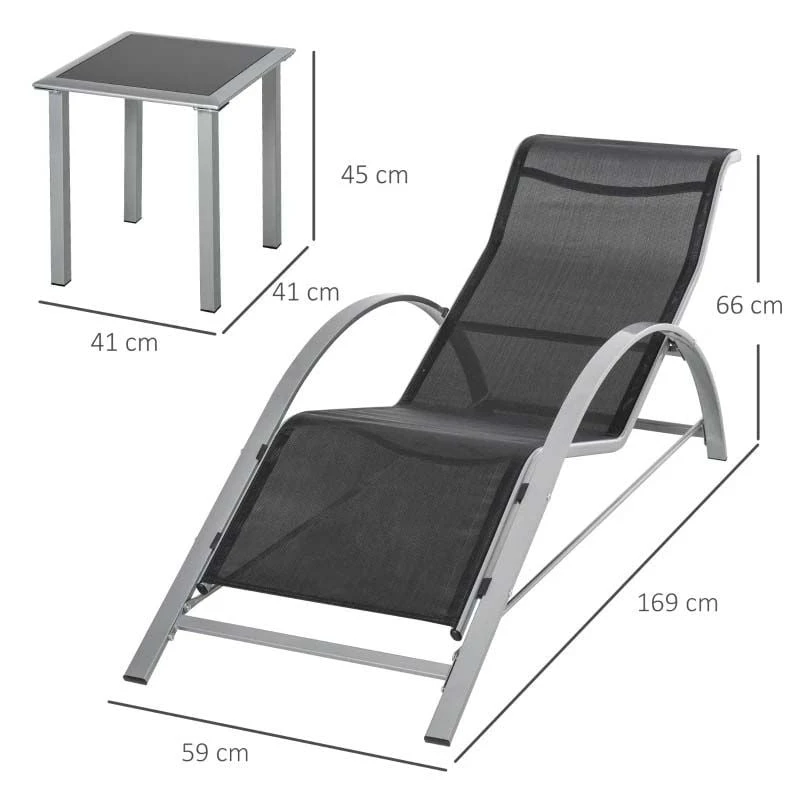 Check out these stunning Outsunny garden sun loungers with side table that we can be sure will compliment your outdoor living space perfectly. Constructed from a powder coated metal frame the set is strong, durable and will last for years to come. Covered in a mesh sling fabric that circulates air keeping you cool on warm summer days and are easily cleaned with a damp cloth. The curved seat contours your body perfectly and will make you feel fully supported and comfortable for hours on end. Complete with a handy side table ideal for resting your drinks or snack bowls on, that is also lightweight, so is easily manoeuvred to your preferred position, even with the elegant glass top finish. If you are looking for a beautifully designed sun lounger set, this is the one for you.